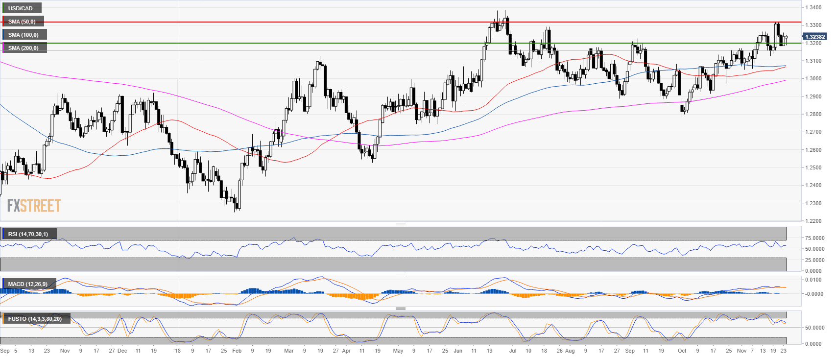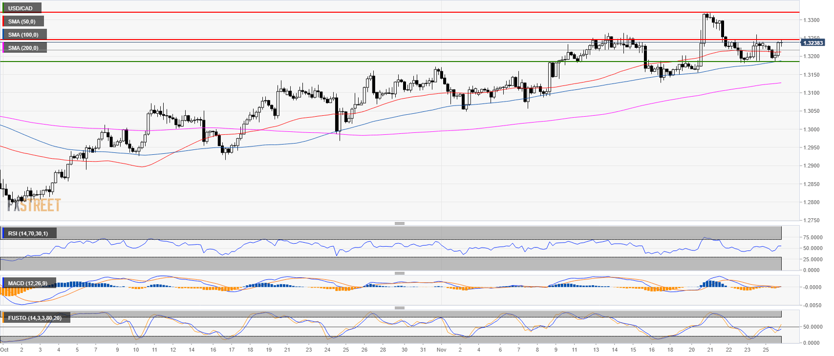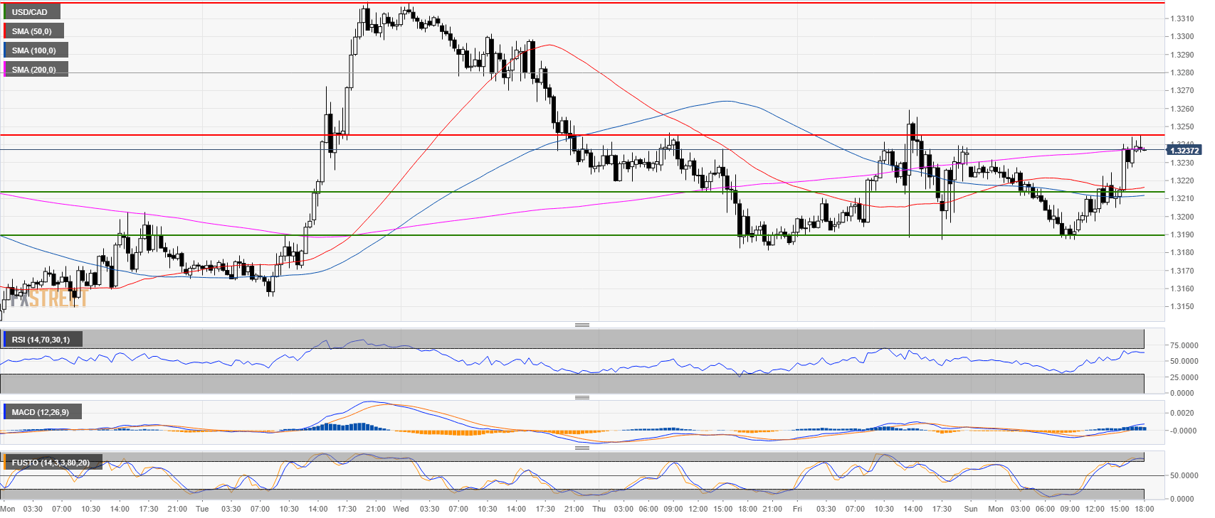 - USD/CAD is likely meeting strong resistance at the 1.3240 level and the 200 SMA.