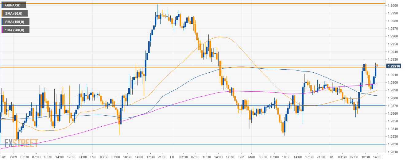 - The 1.2920 resistance is the level to beat for bulls, a break of the level to the upside could lead to 1.3000 figure.