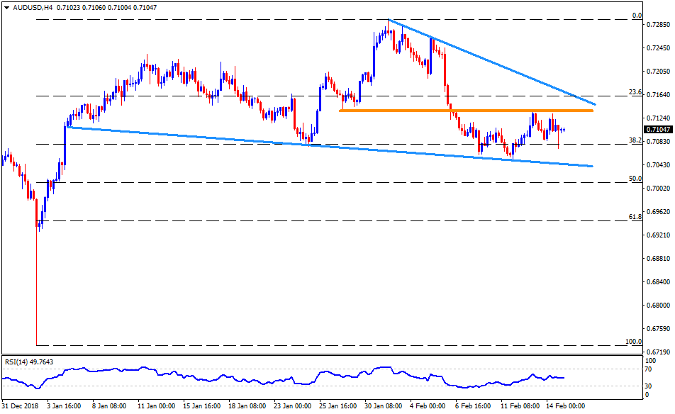 - The pair maintains trading under 0.7135-40 horizontal resistance, connecting present week high to late-January low.