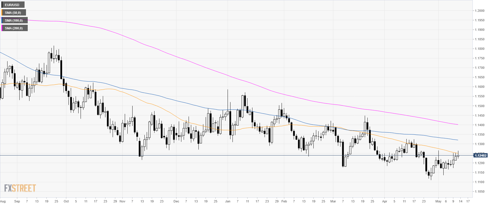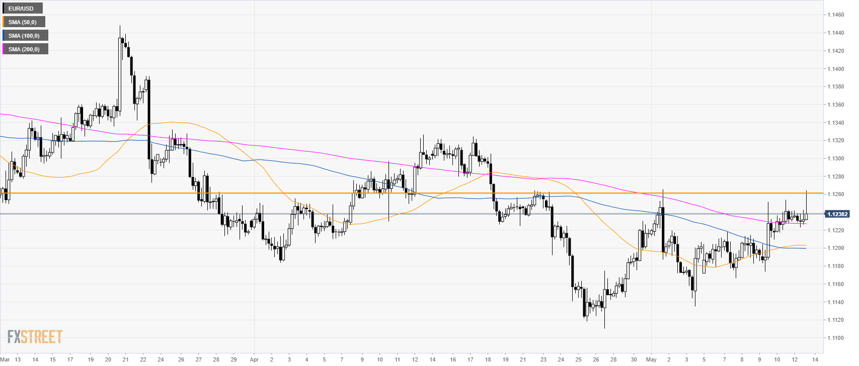 The market is finding no acceptance above 1.1260 resistances as EUR/USD is trading above its main SMAs.
