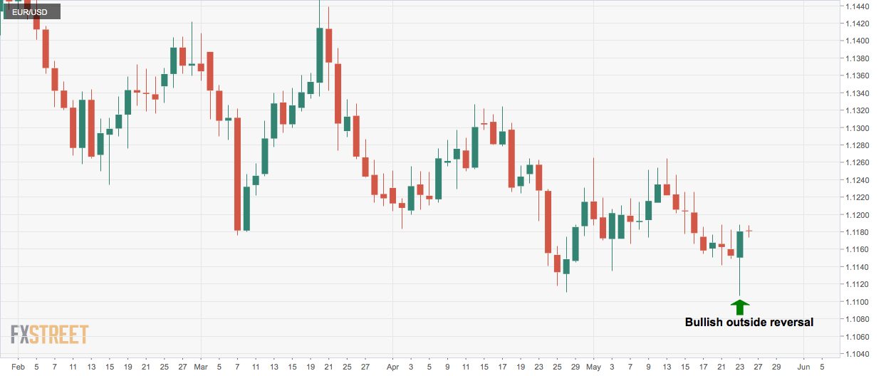 - EUR/USD looks north with bullish engulfing candle on the daily chart.