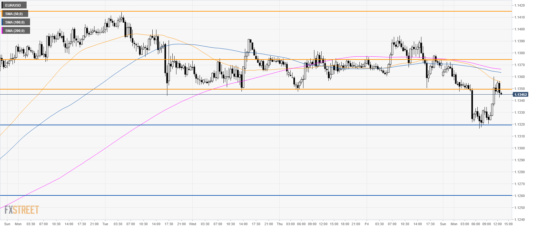 EUR/USD is consolidating below 1.1348 and its main SMAs. Looking up, resistances are at 1.1348, 1.1375 and the 1.1415 level, according to the Technical Confluences Indicator.