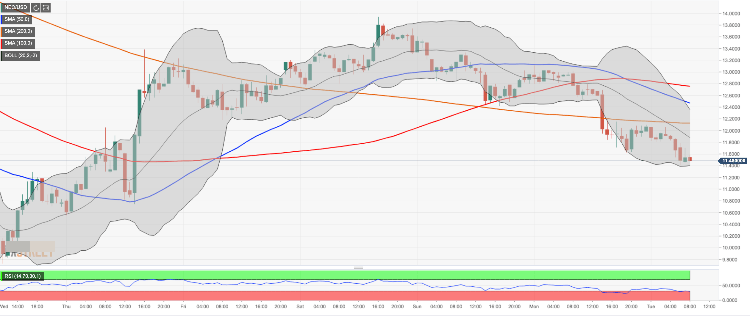 NEO has recovered from the intraday low of $11.42 to trade at $11.60 at the time of writing. The 15th largest digital asset with the current market capitalization of $815 million has lost nearly 10% on a day-on-day basis and over 4% since the beginning of Tuesday. NEO topped at $13.94 on July 20 and has been sliding down ever since. The coin has lost over 17% of its value since that time.