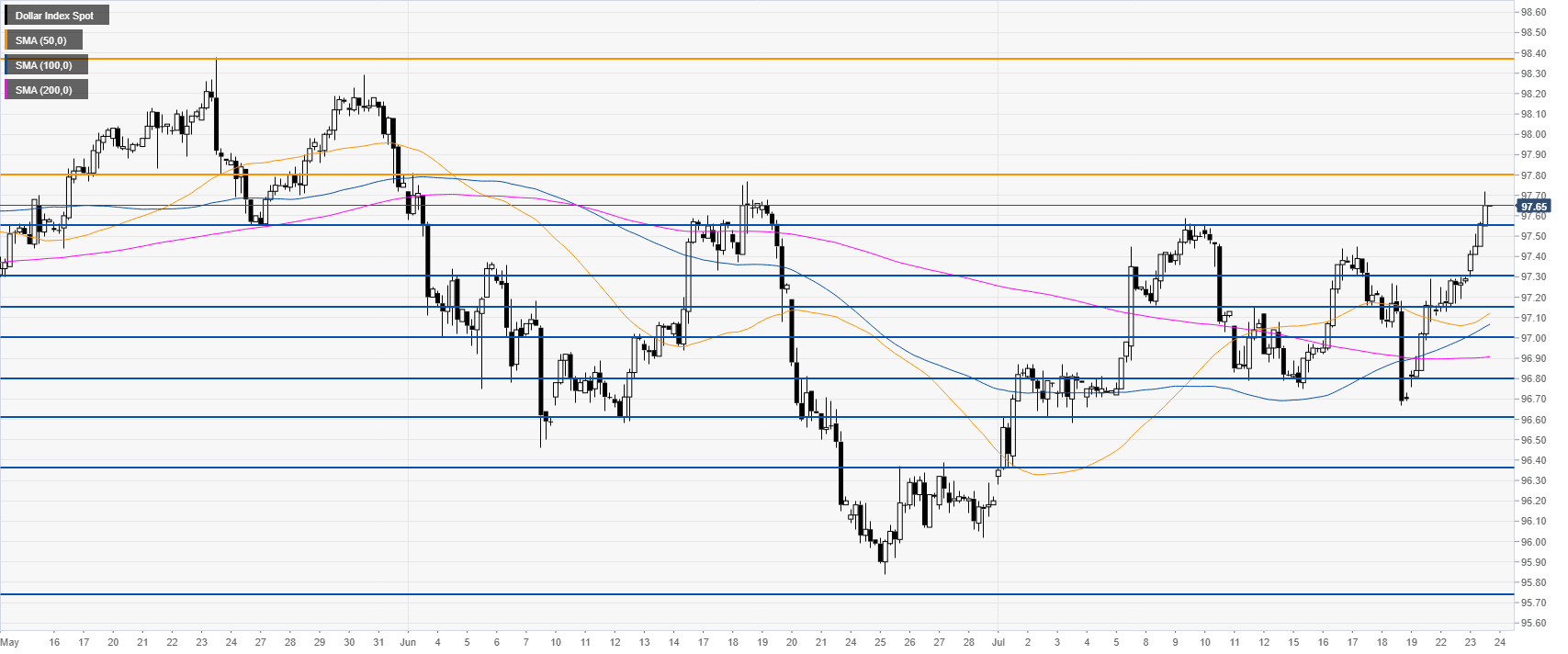 - DXY leaped this Tuesday as the bulls broke above 97.55 resistance.
