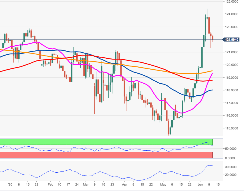 EUR/JPY is down for the fourth session in a row on Wednesday following the rejection from new 2020 tops beyond 124.00 the figure recorded last Friday.