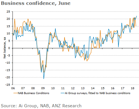 “We think Australian business conditions should post a solid improvement in June. The decline in May was somewhat disappointing, but strength in other business surveys suggests that sentiment remains elevated.