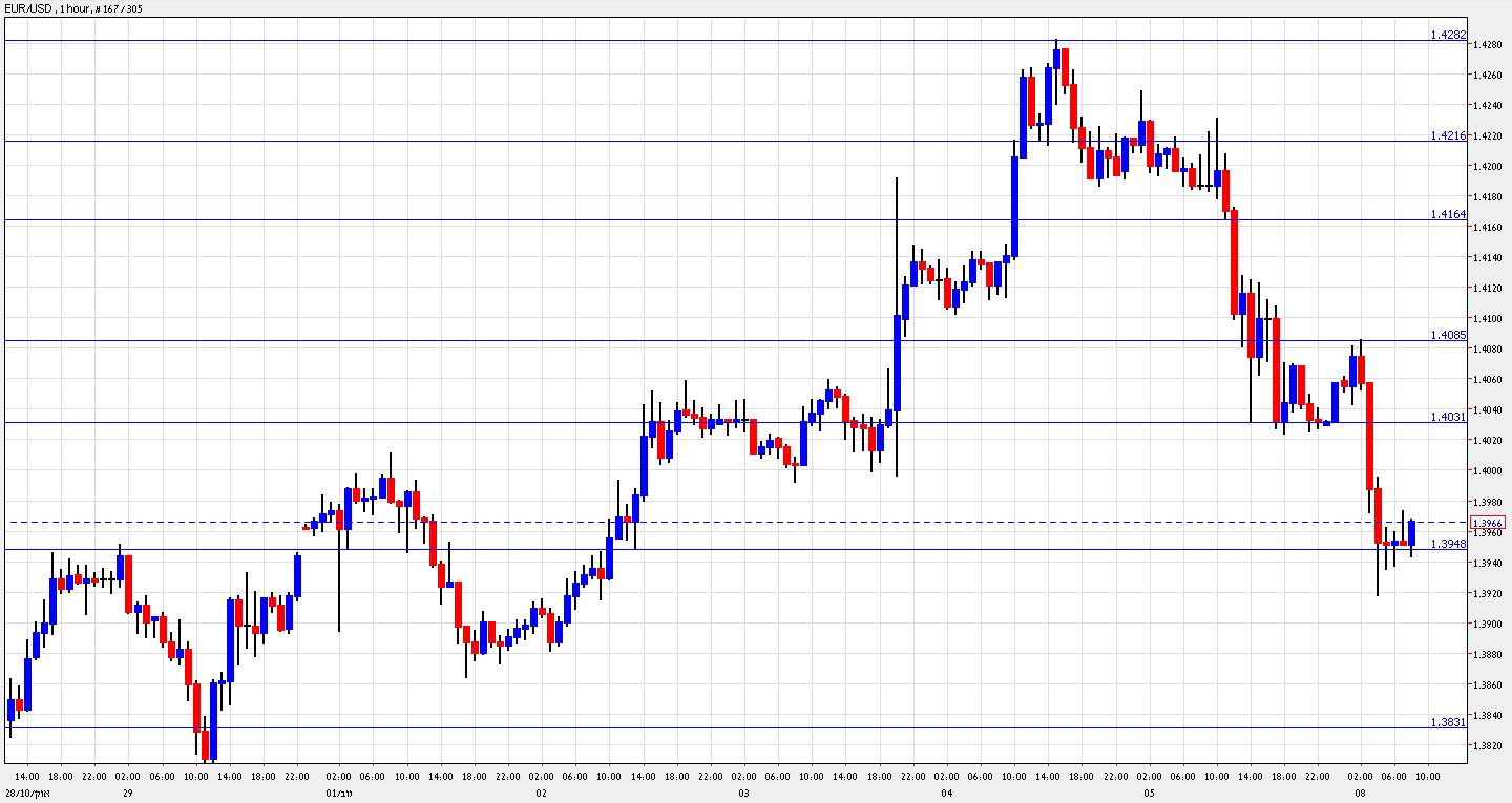 - Asian session: EUR/USD opened with a push higher to 1.4080 but fell quickly in a very active session.