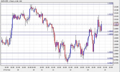 The Aussie was trading at 1.0095 up 0.66% at the time of this writing.