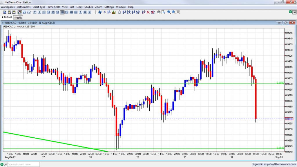USD CAD Falling on Strong Canadian GDP August 31 2012