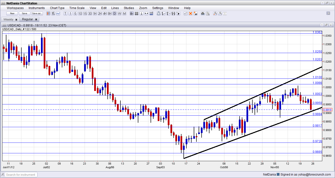 The very round number of USD/CAD parity is a clear line of course, and the battle was very clear to see at the beginning of August 2012. 0.9950 provided some support for the pair during November and worked as resistance earlier.