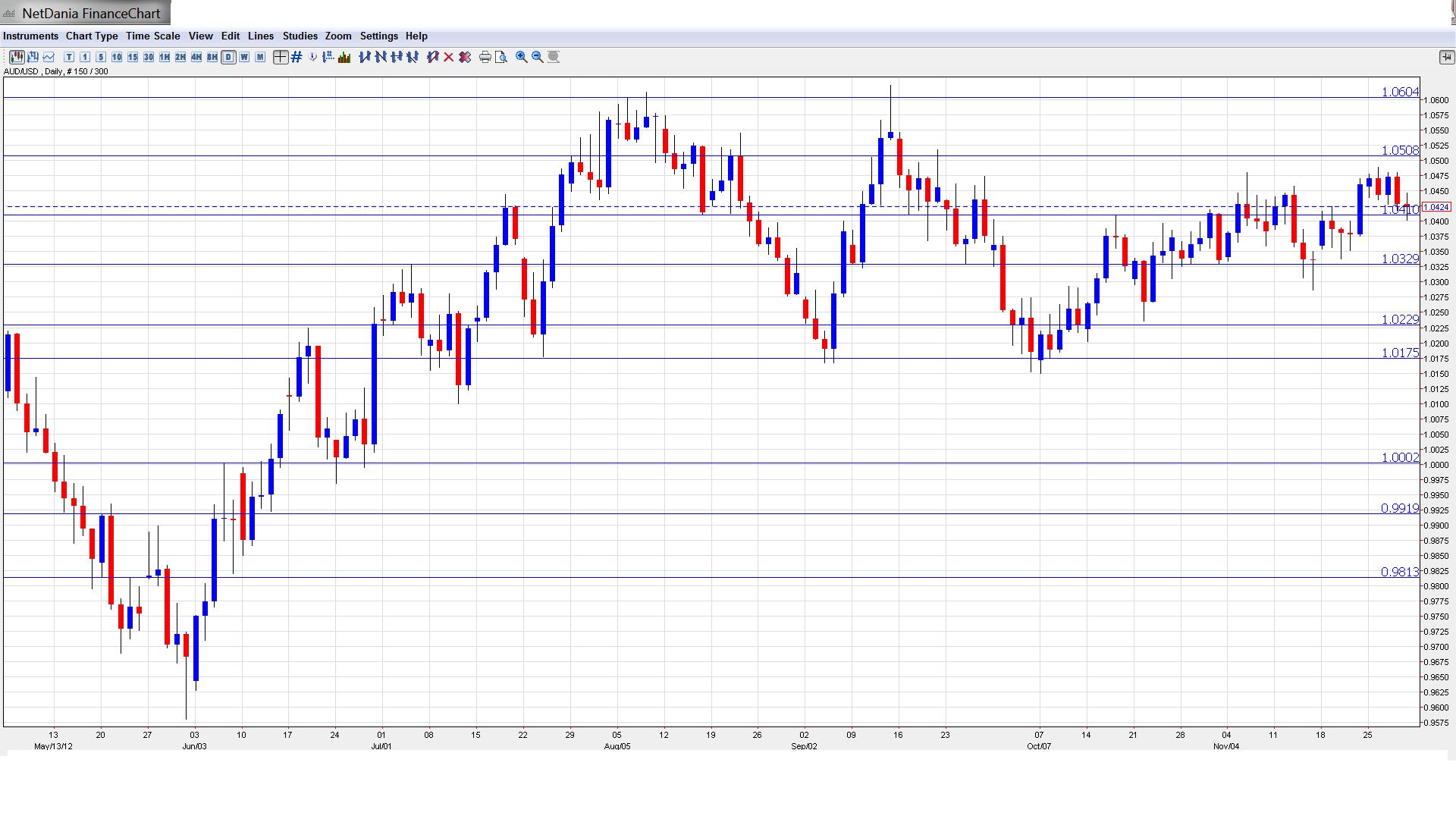 AUD/USD graph with support and resistance lines on it. Click to enlarge: