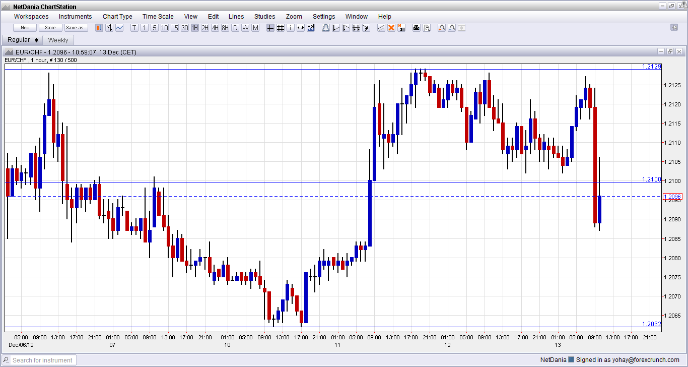 Towards the decision, there was some speculation that the SNB would lift the peg to 1.25, given the low CPI. EUR/USD which traded above 1.21 for a day or so, dropped instantly by around 40 pips. The reaction was also felt in EUR/USD.