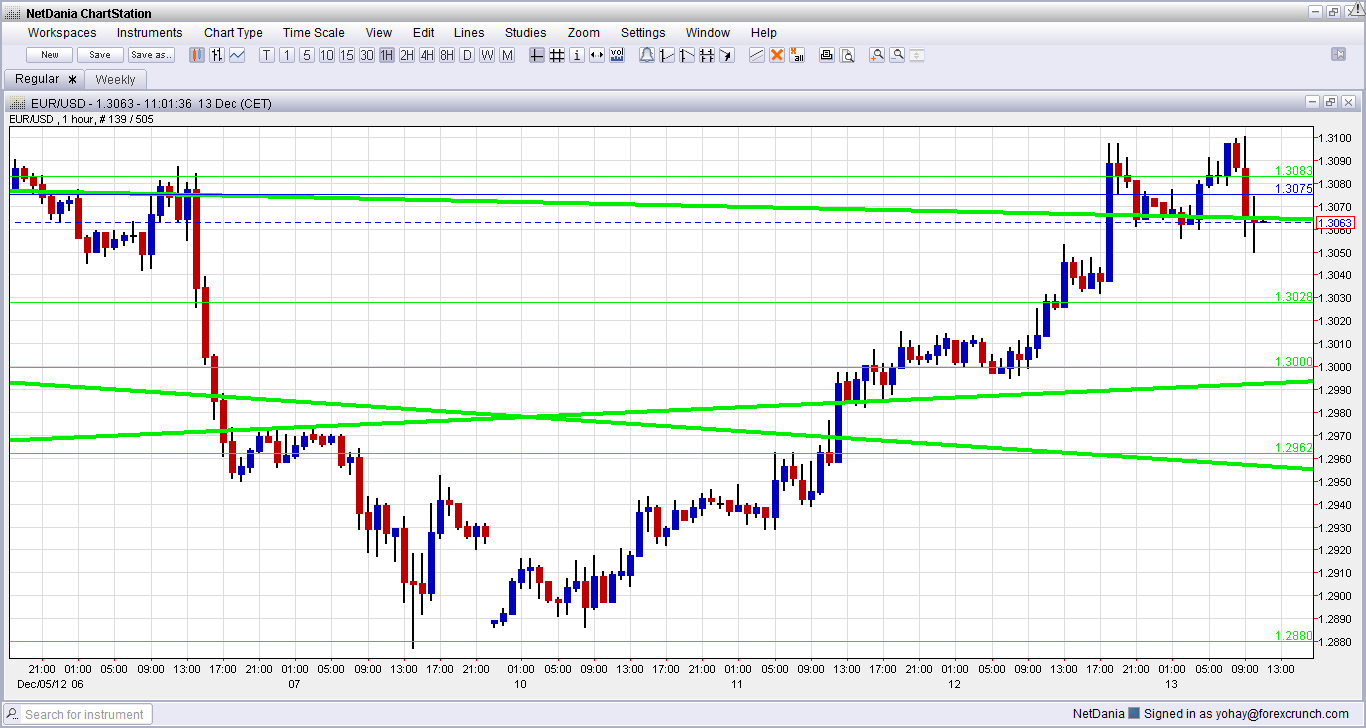 Euro/dollar traded just under the 1.31 level, after enjoying the Fed decision of QE4. However, the Swiss decision sent it lower, as low as 1.30 before it reached the current level of 1.3063.