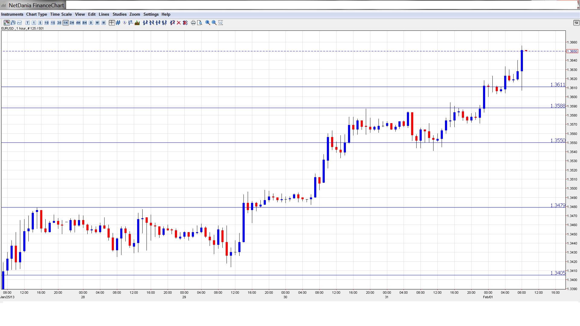 - Euro sky high despite Eurozone troubles: The euro continues to climb to new levels, and is enjoying the view above the 1.36 horizon, its highest level since November 2011. The currency had a spectacular January, gaining about six cents against the US dollar. The continental currency has been bolstered by improving German data, as well as optimistic forecasts about the Eurozone economy from ECB President Mario Draghi and others. These officials acknowledge that the Eurozone is going through a tough time, but are confident that the economy will bounce back later in 2013. Although a range of indicators, notably employment and PMI numbers, point to a deepening recession and continuing fallout from the debt crisis, the euro is enjoying the ride, at least for now.
