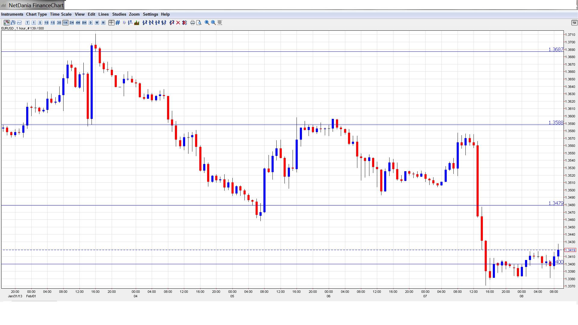 EUR/USD was down sharply after the ECB policy meeting on Thursday. Speaking after the meeting, ECB head Mario Draghi, warned that the high value of the euro was a risk to growth in the Eurozone, and the euro responded by shedding more than a cent against the US dollar. In economic news, US Unemployment Claims was another disappointment, as the indicator failed to meet the market estimate. There was positive news to kick off Friday, as German Trade Balance hit a three-month high. Today’s major release is US Trade Balance.