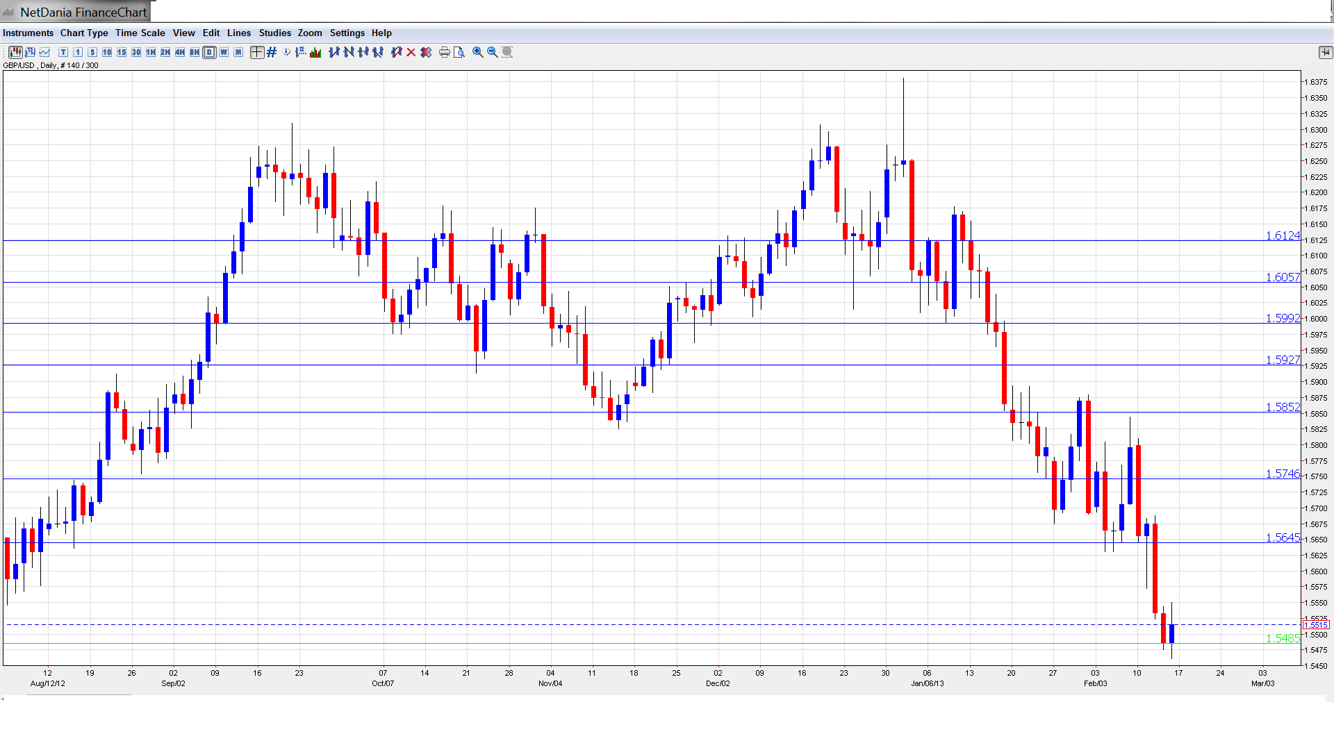 GBP/USD opened the week at 1.5700. The pair  reached a high of  1.5810, but  then took a tumble, as it fell  all the way to  1.5461.  The pair closed the week at 1.5515, just below the support level of 1.5515 (discussed last week).