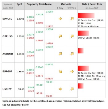 - GBP: Just construction PMI data. Usually not a big deal, but market could be more sensitive after the very weak manufacturing numbers seen on Friday.