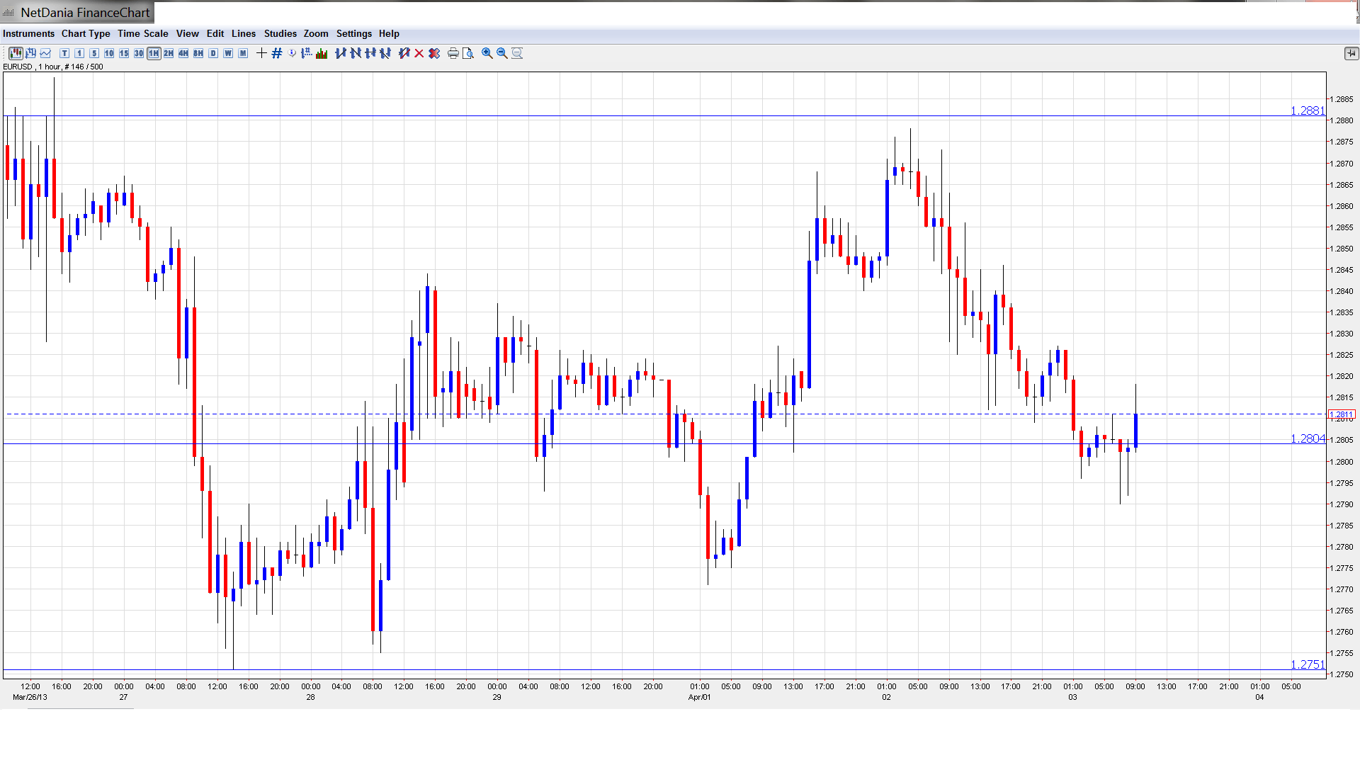 EUR/USD is under pressure in Wednesday trading, as the pair is struggling to stay above the 1.28 level. The euro has lost ground after weak employment and manufacturing data out of the Eurozone on Tuesday. Wednesday sees only on release out of the Eurozone. Meanwhile, the markets remain cautious ahead of the ECB policy meeting on Thursday. In the US, there are two major releases today – ADP Non-Farm Employment Change and the ISM Non-Manufacturing PMI.