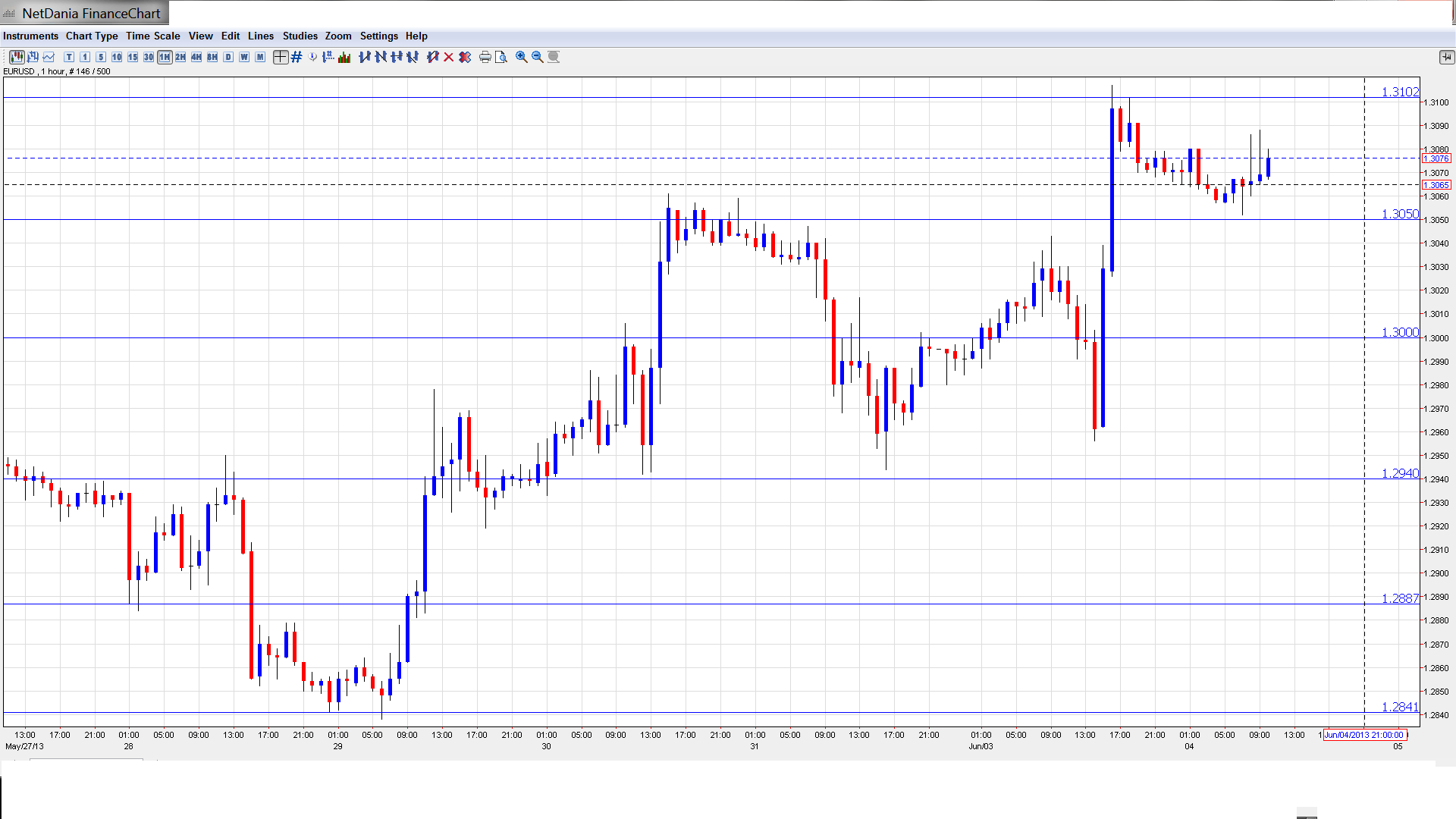 The euro has started the month of June with a bang, as EUR/USD continues to push higher. The pair has gained close to one cent this week, and was trading in the high-1.30 range in Tuesday’s European session. The euro got a boost from excellent Spanish numbers, as Unemployment Change dropped sharply. US key releases continue to slump, as ISM Manufacturing PMI came in below the estimate. Today’s highlight is US Trade Balance. The markets are expecting a slightly higher deficit than in the May release.