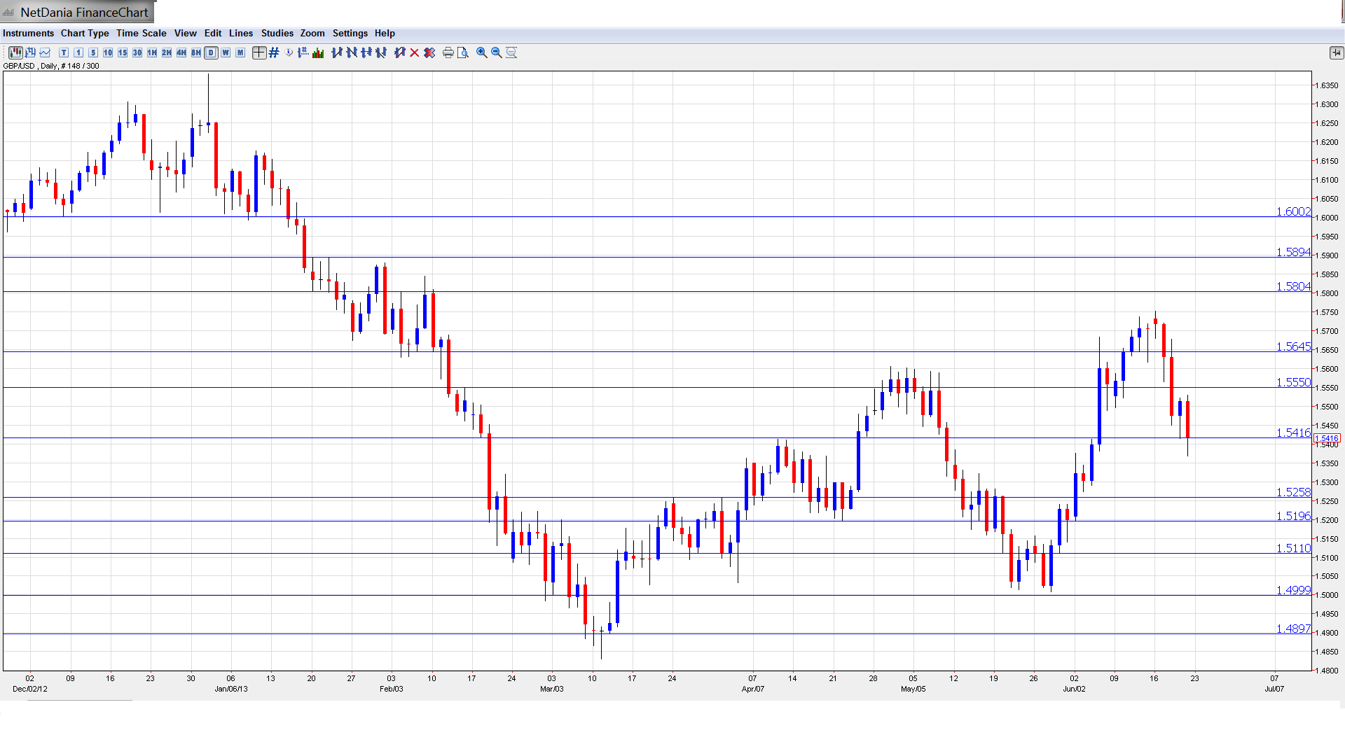 GBP/USD graph with support and resistance lines on it. Click to enlarge: