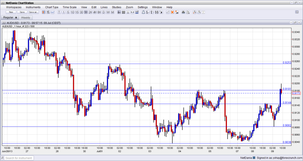 0.9036 was the low that the Aussie met early in July (when it was hit by the RBA) and it then moved to hit 0.9180 twice. After this rise, it fell once again and reached 0.9040. This time, the recovery continued and the pair broke above 0.9180 to touch 0.92. While this break isn’t confirmed yet, the Aussie seems firmer on the charts.