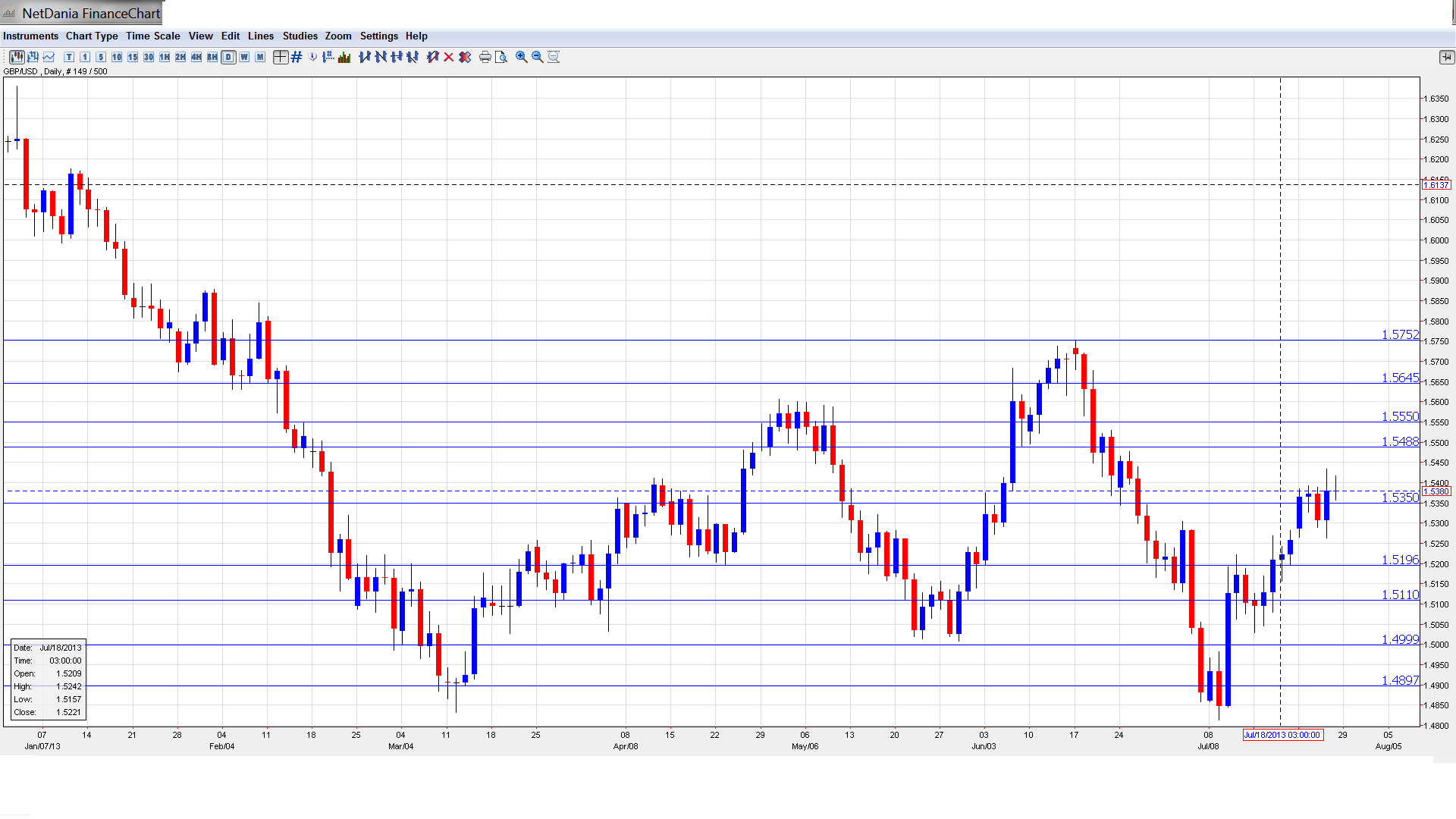 1.5484 was breached in June, as the pound went on a sharp skid that saw it drop below the 1.49 line.