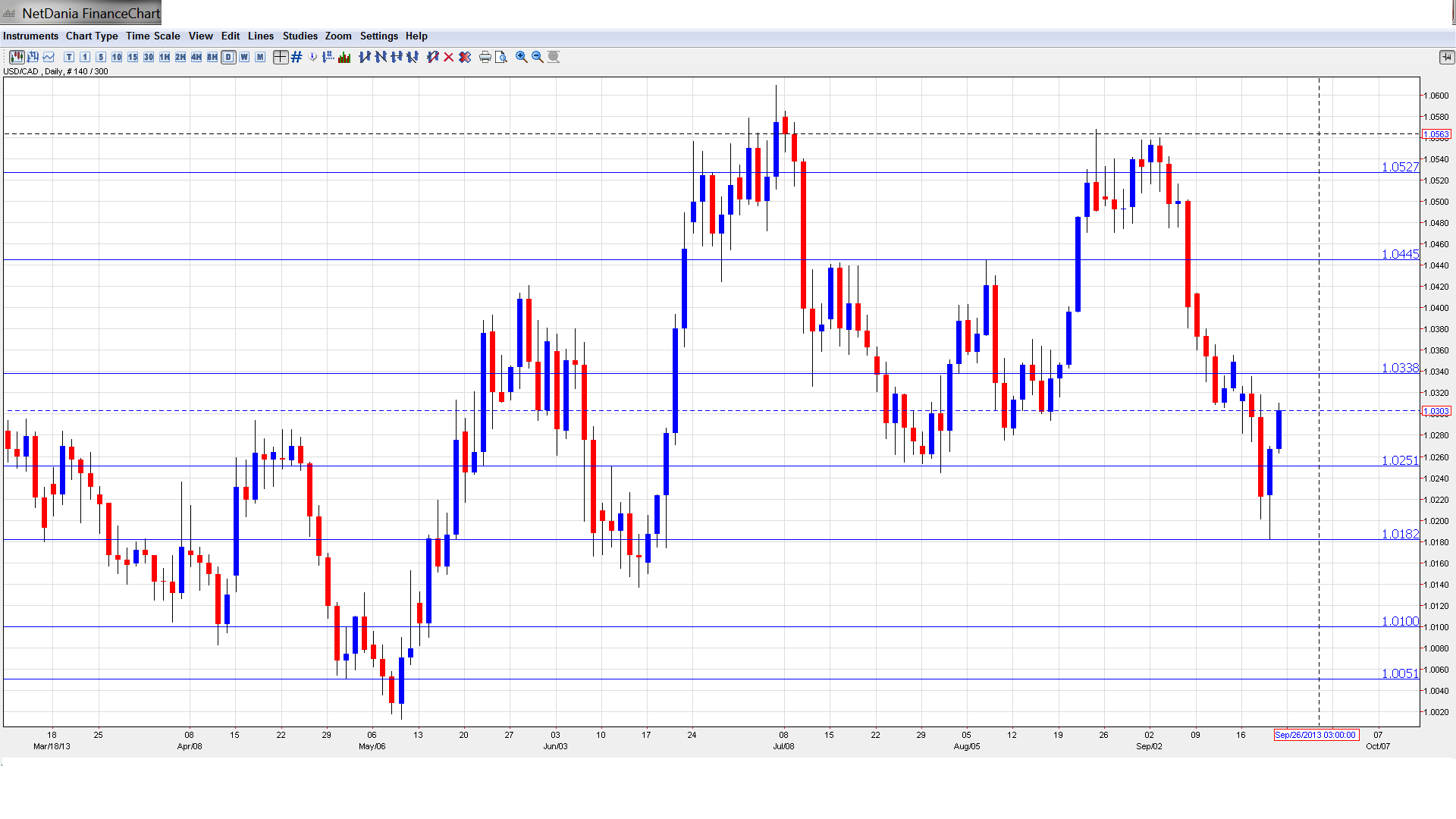 The Canadian dollar showed some strength during the week against the US dollar, but was unable to hold onto these gains, and ended the week almost unchanged. USD/CAD closed the week just above the 1.03 line. This week’s major release is Core Retail Sales. Here is an outlook on the major market-movers and an updated technical analysis for USD/CAD.
