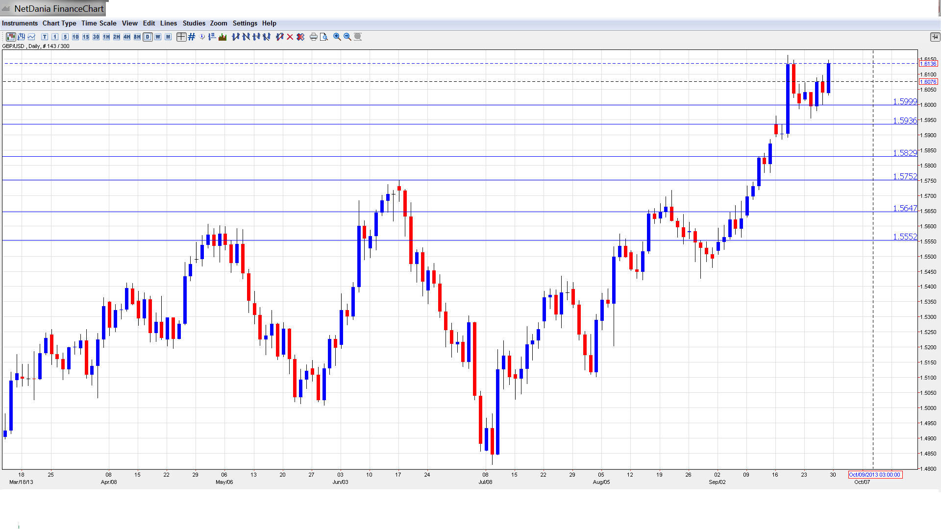 We next encounter resistance at 1.6247. This was a key resistance line in October and November 2012.