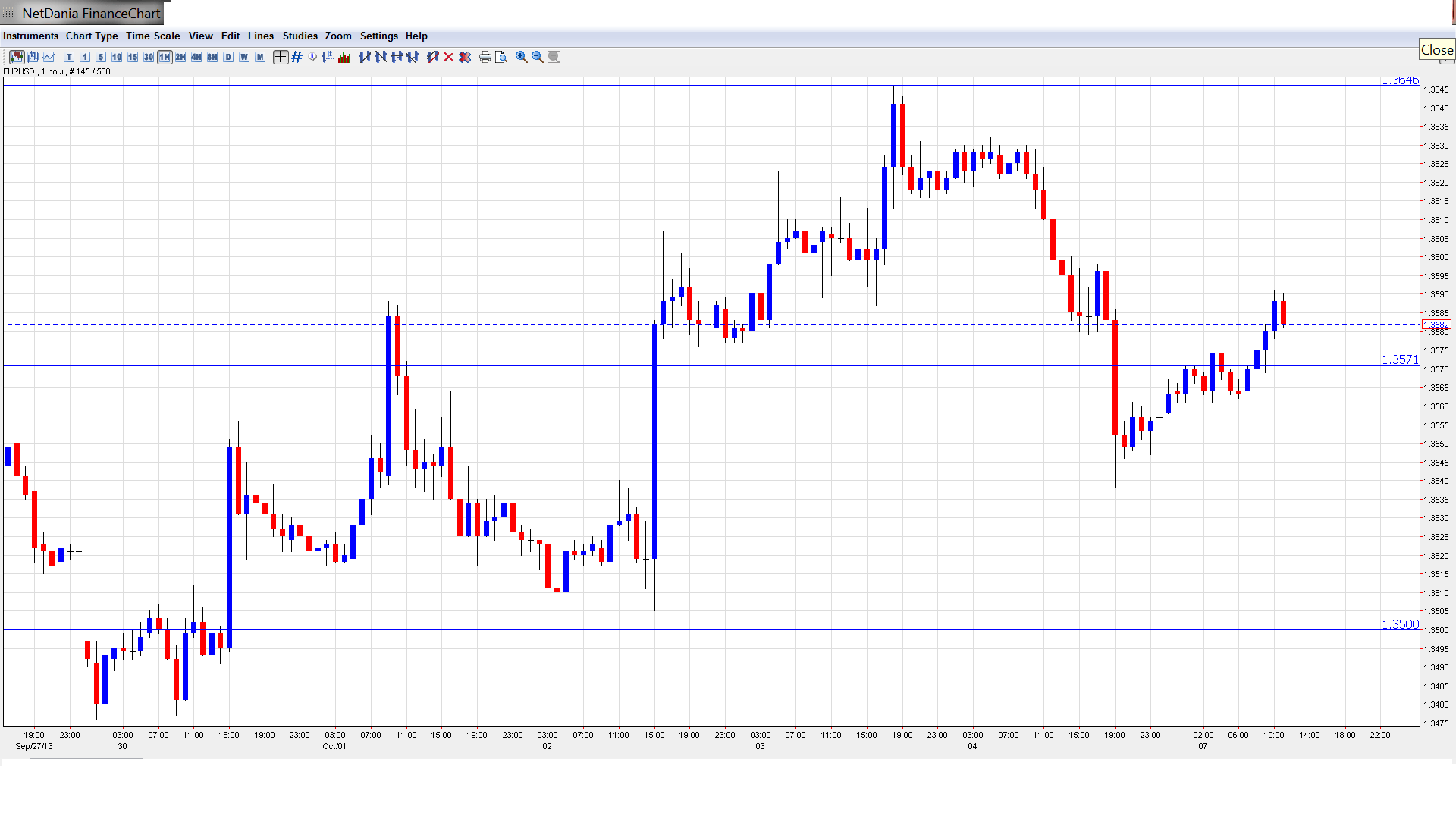 - In the Asian session, EUR/USD was steady, trading close to the 1.3570 line. The pair has edged upwards in the European session.