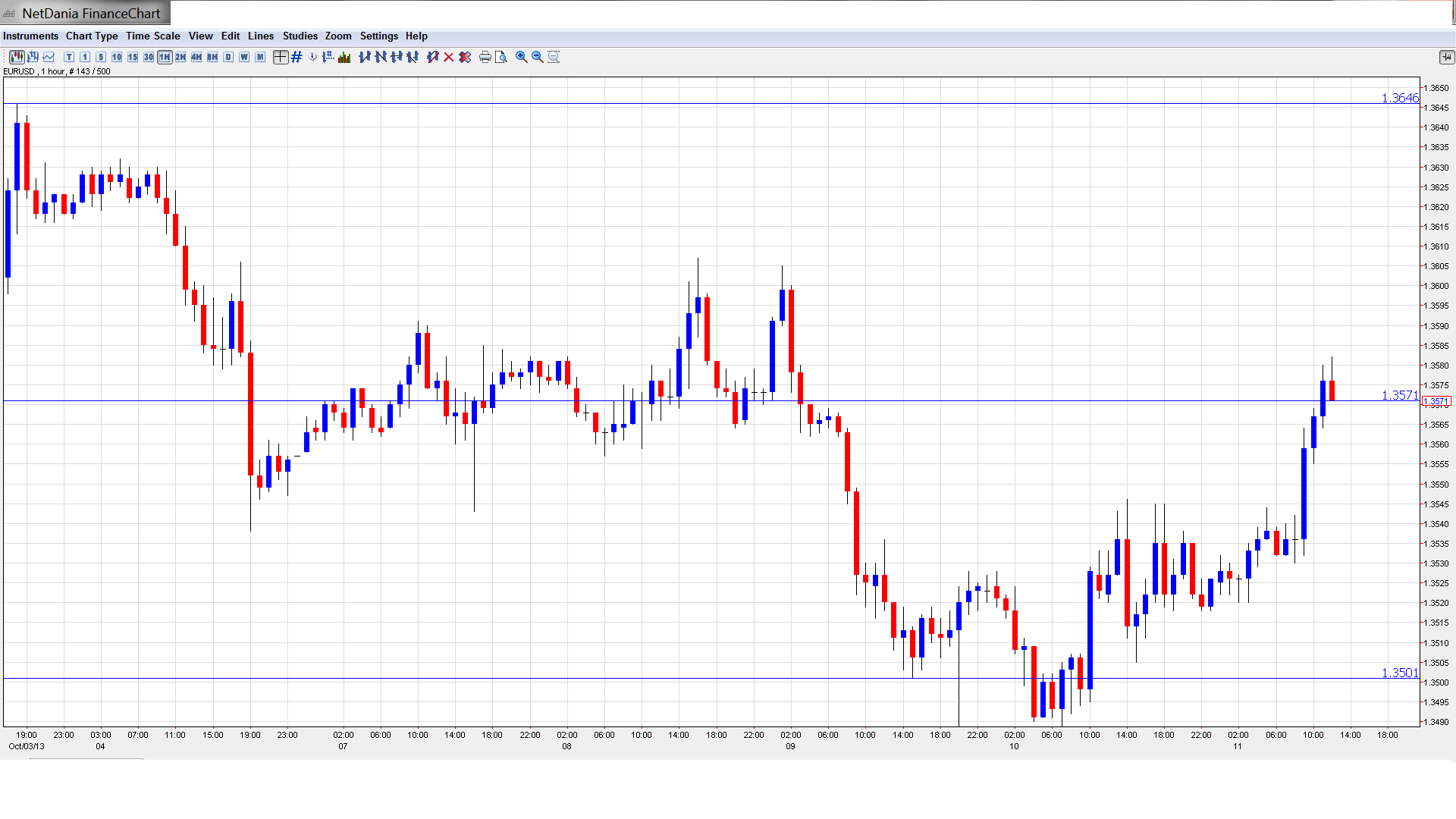 EUR/USD has posted gains in Friday trading. In the European session, the pair is trading in the mid-1.35 range. US Unemployment Claims looked awful on Thursday, jumping to its highest level since April. Friday has a light schedule, highlighted by UoM Consumer Sentiment. There is talk of progress over the US shutdown and debt ceiling, with high-level talks continuing on Capitol Hill.