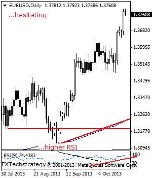 Further out, resistance comes in at the 1.3750 level followed by the 1.3800 level and possibly higher towards the 1.3850 level.Its daily RSI is bullish and pointing higher supporting this view.
