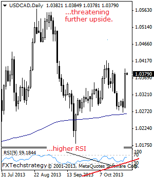 USD/CAD: With USD/CAD rallying strongly on Wednesday, further price extension is likely in the days ahead. Resistance resides at the 1.0418 level.