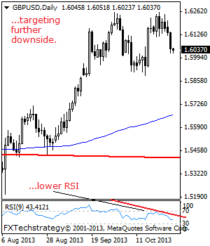 Further down, support lies at the 1.5850 level and next the 1.5800 level. Conversely, resistance resides at the 1.6115 level where a violation will aim at the 1.6246 level. A breach of here will resume its medium term uptrend.