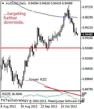 However, if breached the pair will target the 0.9200 level. Its daily RSI is bearish and pointing lower supporting this view.