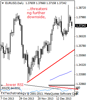 EUR/USD: EUR now faces risk of more downside pressure having followed through lower on the back of its Tuesday weakness. Support comes in at the 1.3687 level, its Dec 27’2013 low with a breach targeting the 1.3624 level, representing its Dec 24’2013 low and and then the 1.3550 level. We may see the bulls come in here and push the pair higher.
