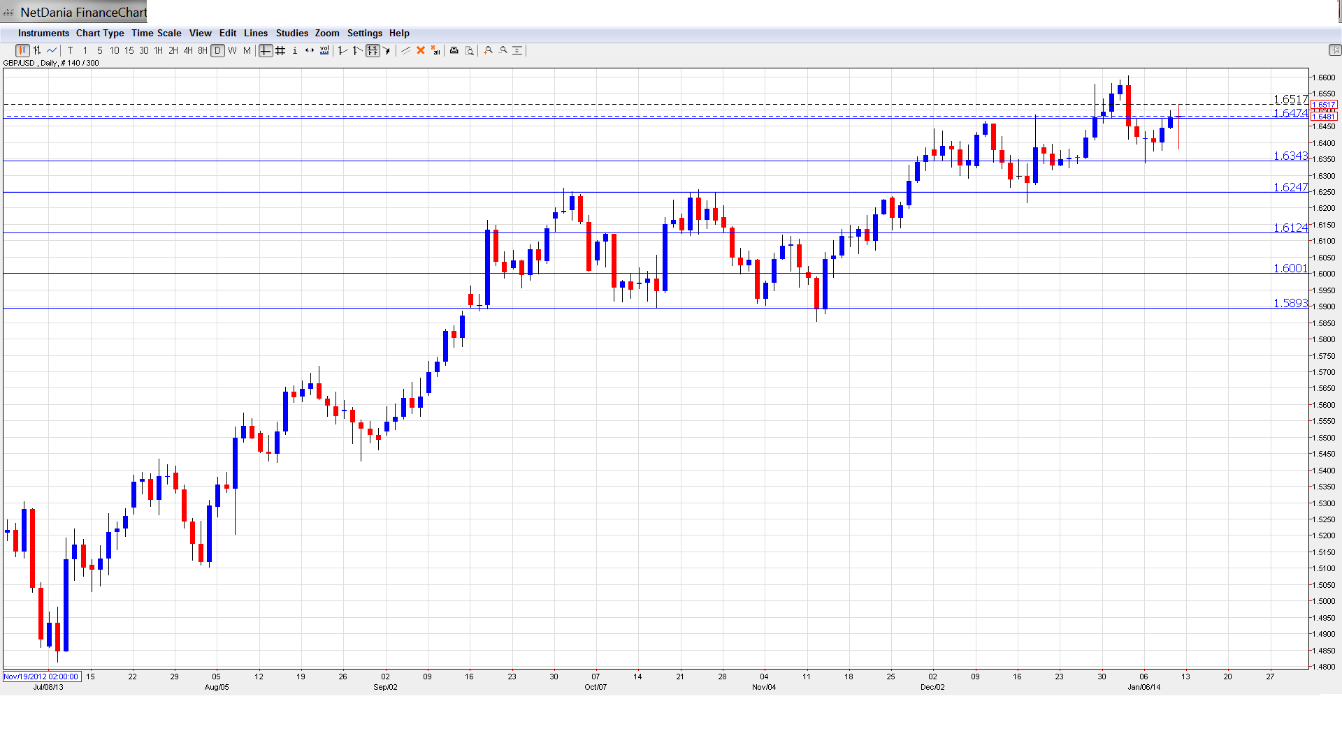 1.6247 continues to provide the pair with strong support. This was a key resistance line in October and November 2012.