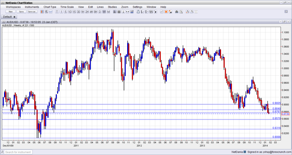 The fresh low is 0.8731, a level last seen in July 2010, 3 and a half years ago. What are the next support levels? We have to look back to 2010.