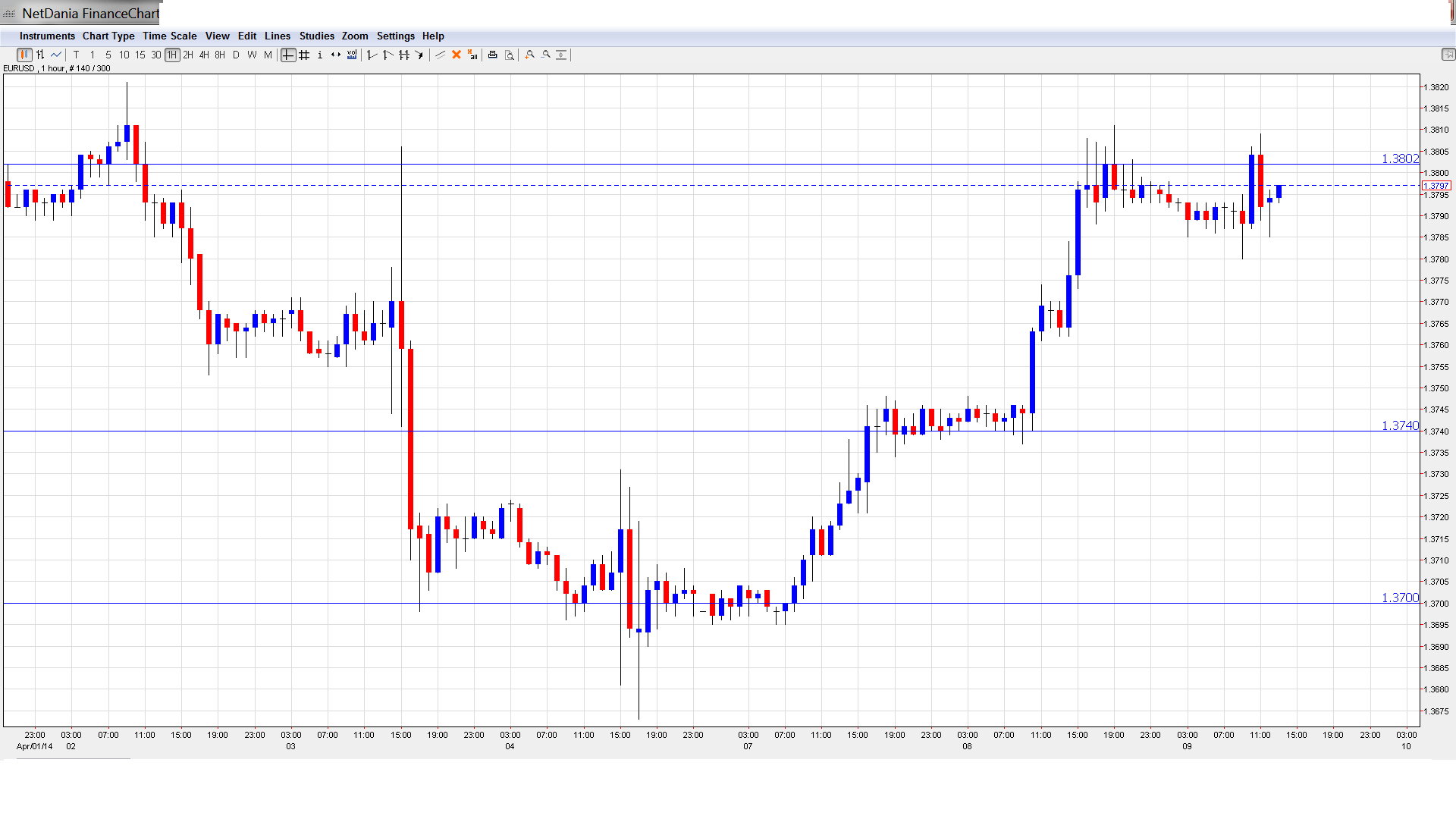 - EUR/USD was stable in the Asian session, trading close to 1.3790. In European trading, the pair crossed above the 1.38 line before retracting.