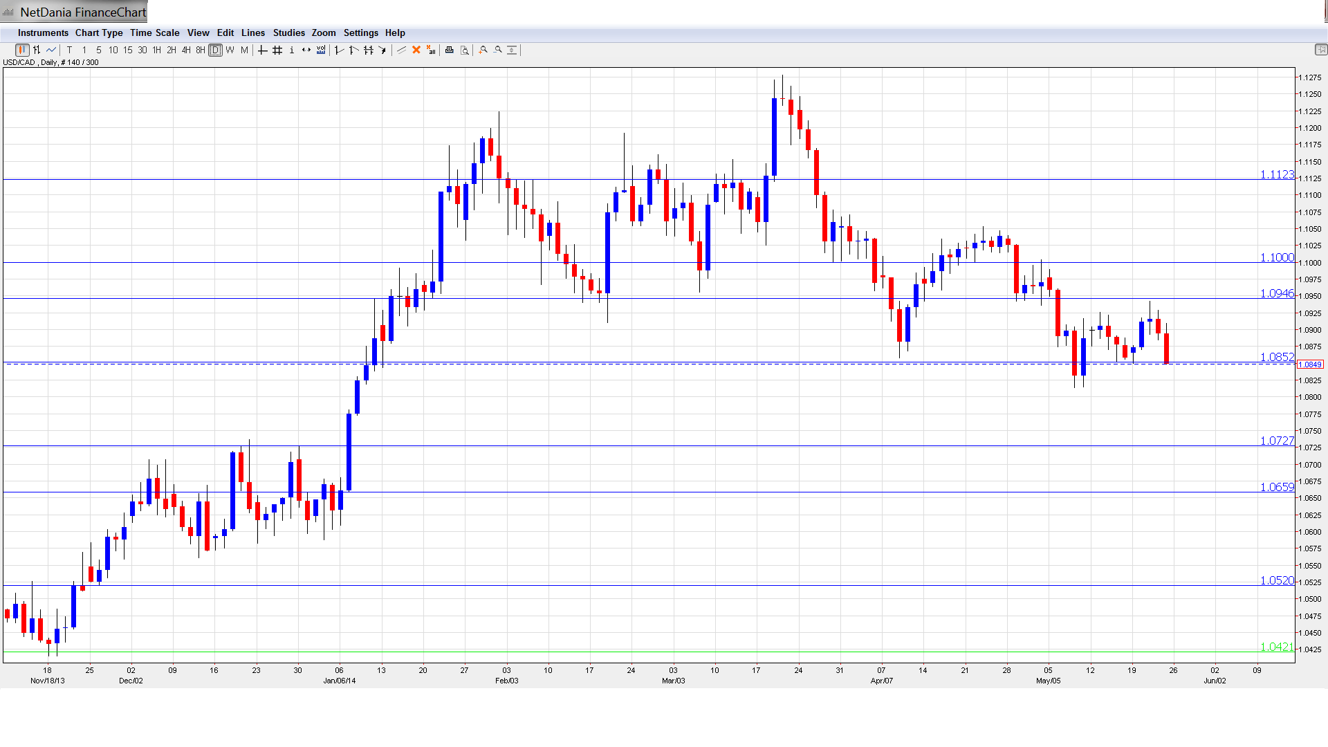 [do action=”autoupdate” tag=”USDCADUpdate”/] USD/CAD daily chart with support and resistance lines on it.- Corporate Profits: Tuesday, 12:30. This report is released on a quarterly basis, magnifying the impact of each release. The indicator increased 0.8% in Q4 of 2013, and the markets are hoping for another gain in Q1.