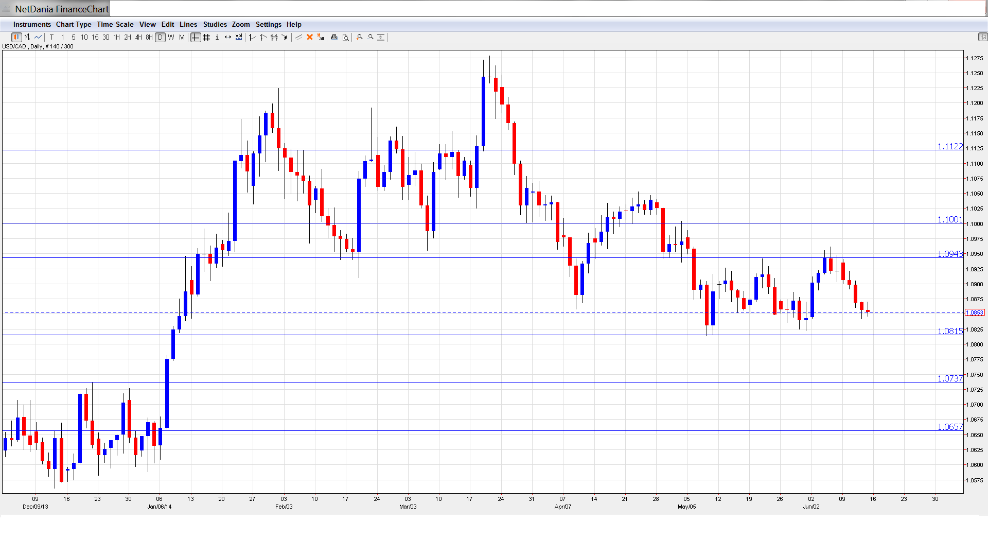 [do action=”autoupdate” tag=”USDCADUpdate”/] USD/CAD daily chart with support and resistance lines on it.