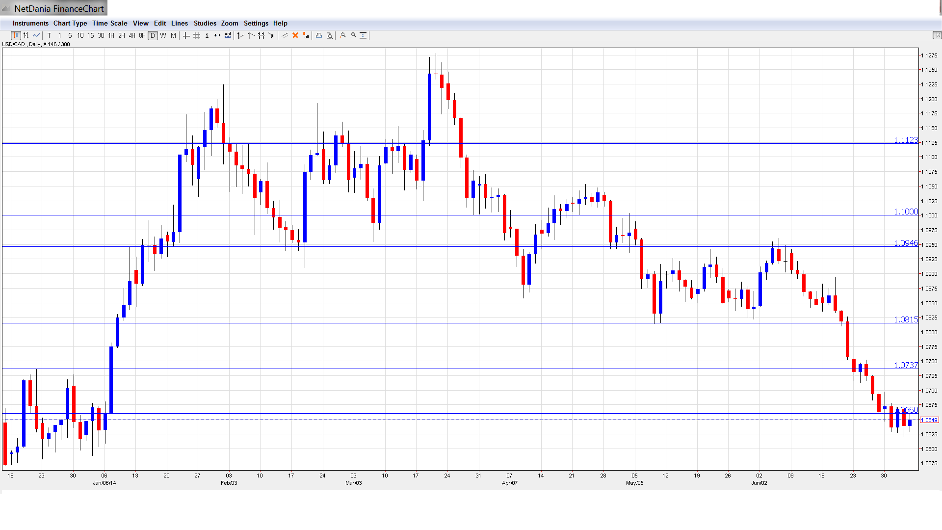 [do action=”autoupdate” tag=”USDCADUpdate”/] USD/CAD daily chart with support and resistance lines on it.