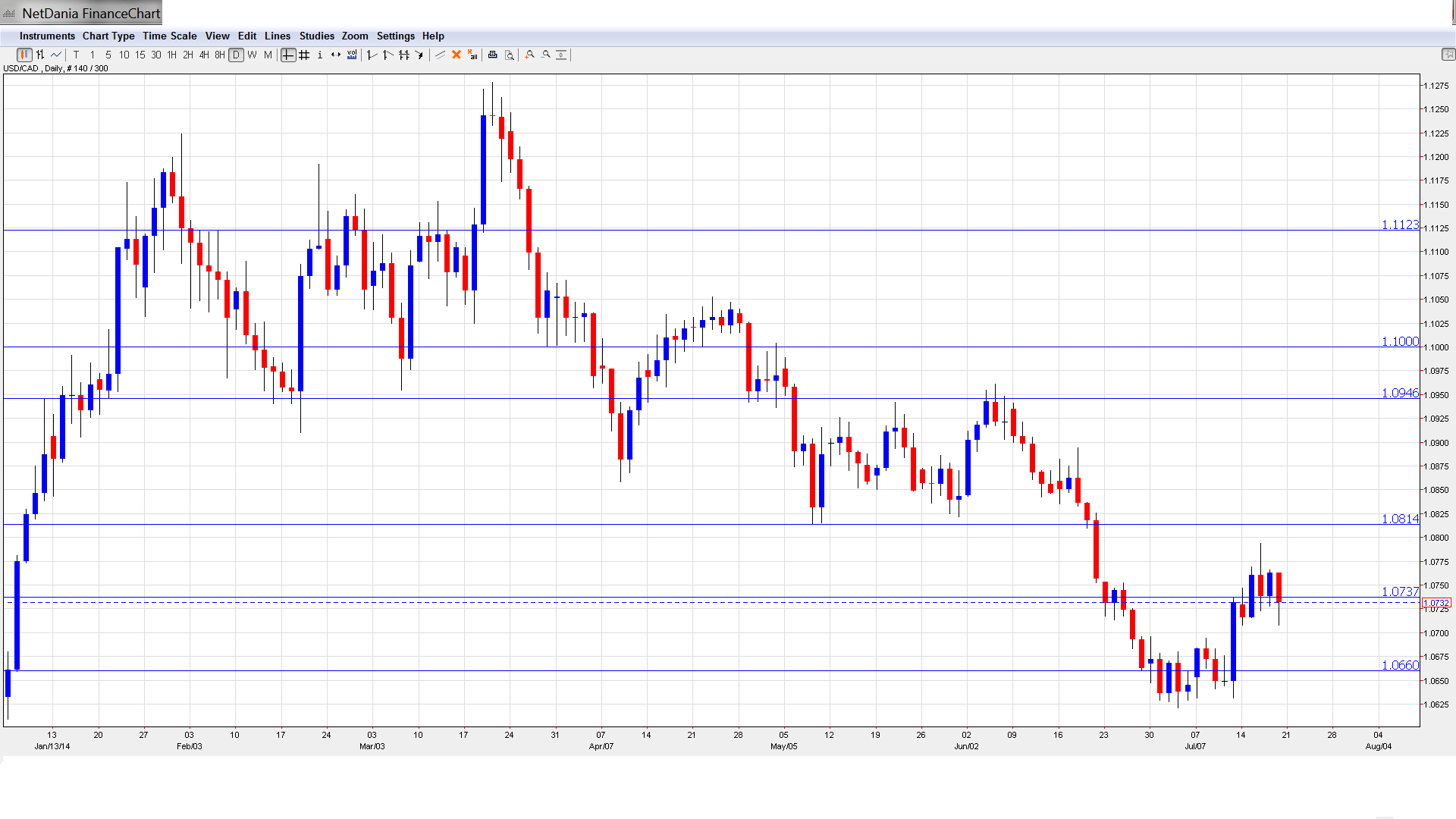 USD/CAD was unchanged at the end of the week, closing at 1.0732. The upcoming week is very quiet, with just two events. Here is an outlook on the major events and an updated technical analysis for USD/CAD.