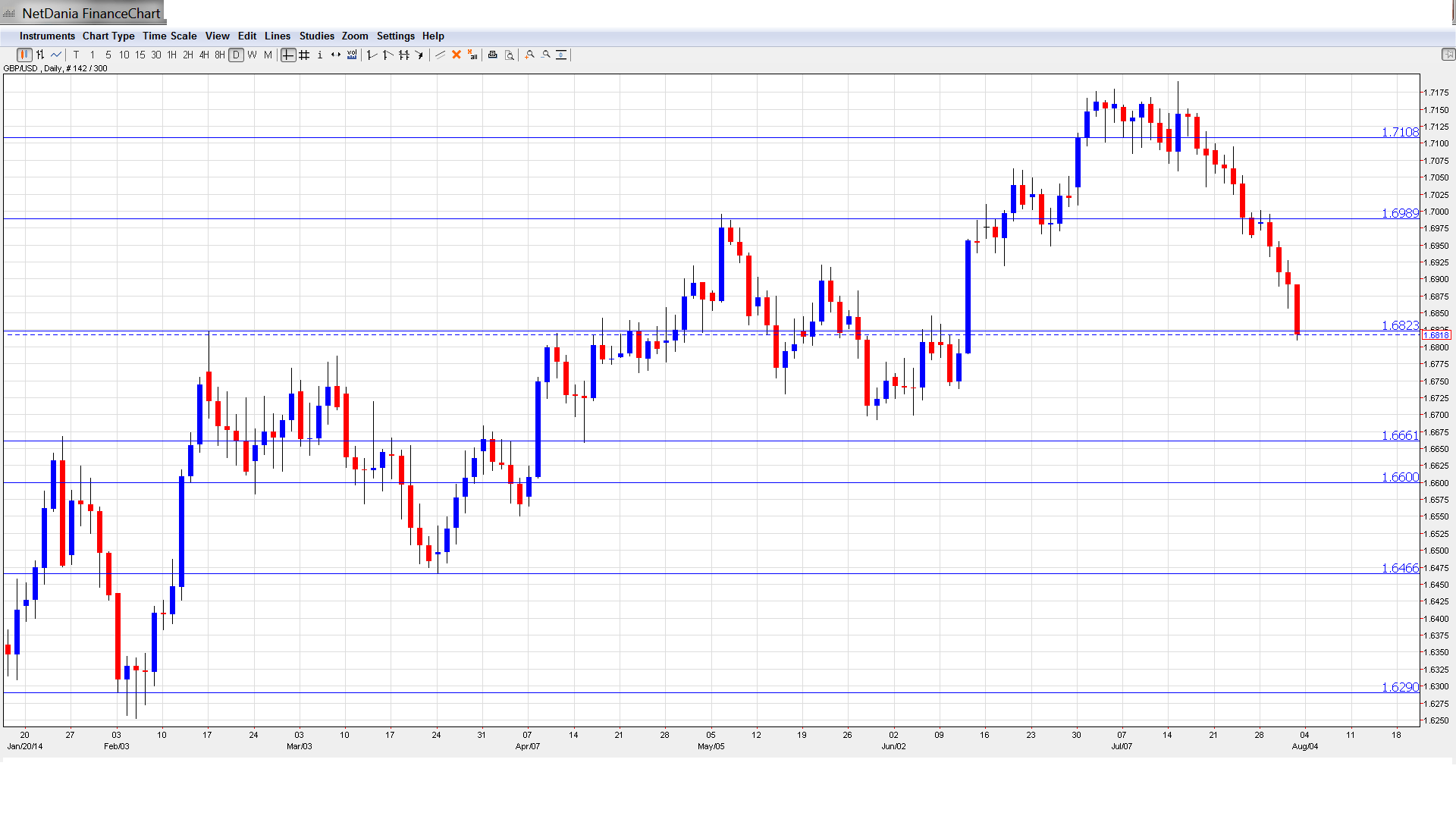 The pound’s woes continue, as GBP/USD lost about 160 points last week. The pair closed the week at 1.6818. This week’s highlight are PMI releases and Manufacturing Production. Here is an outlook for the main events moving the pound, and an updated technical analysis for GBP/USD.