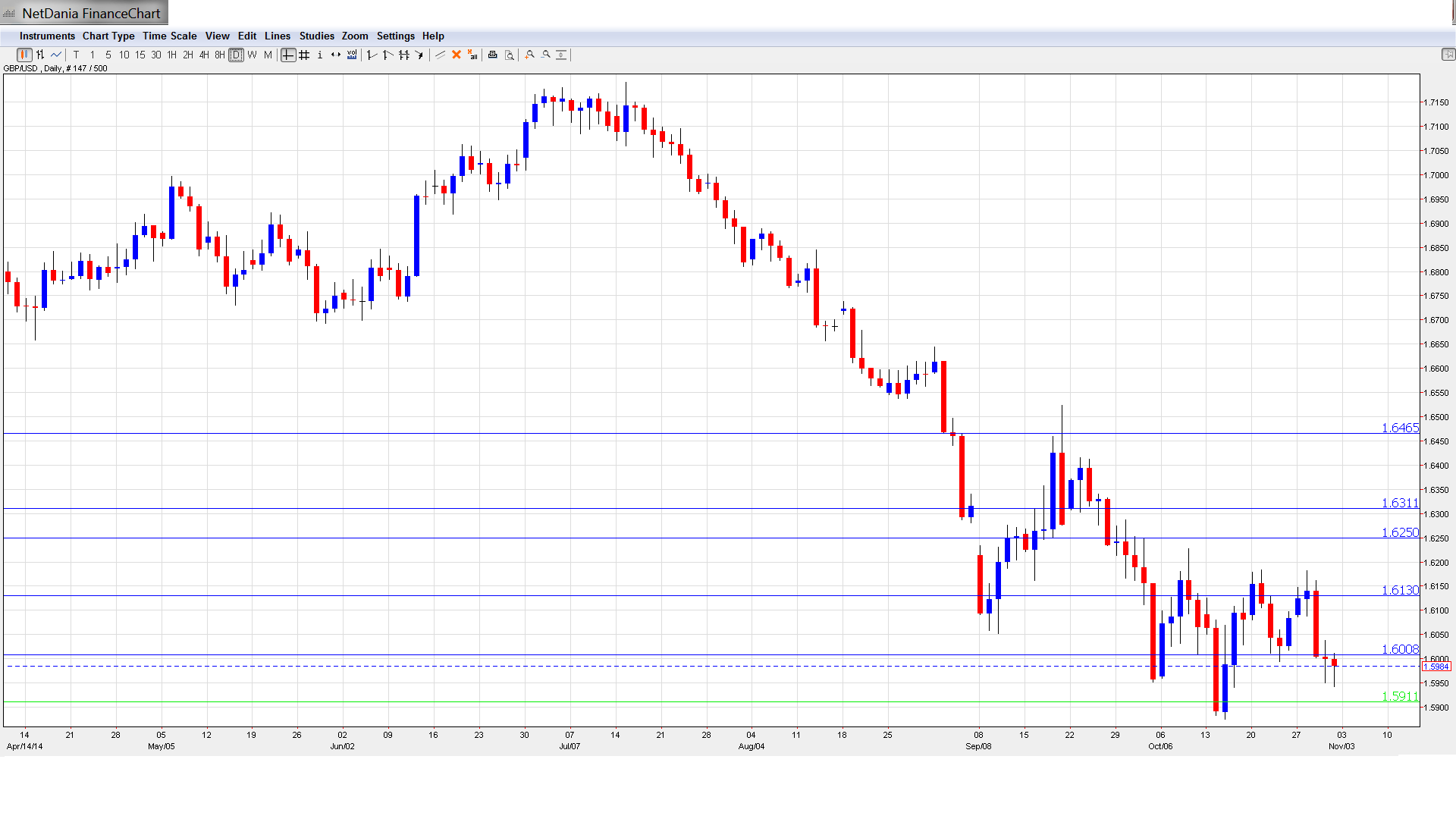 1.5909 is an immediate support role. It has held firm since November 2013.