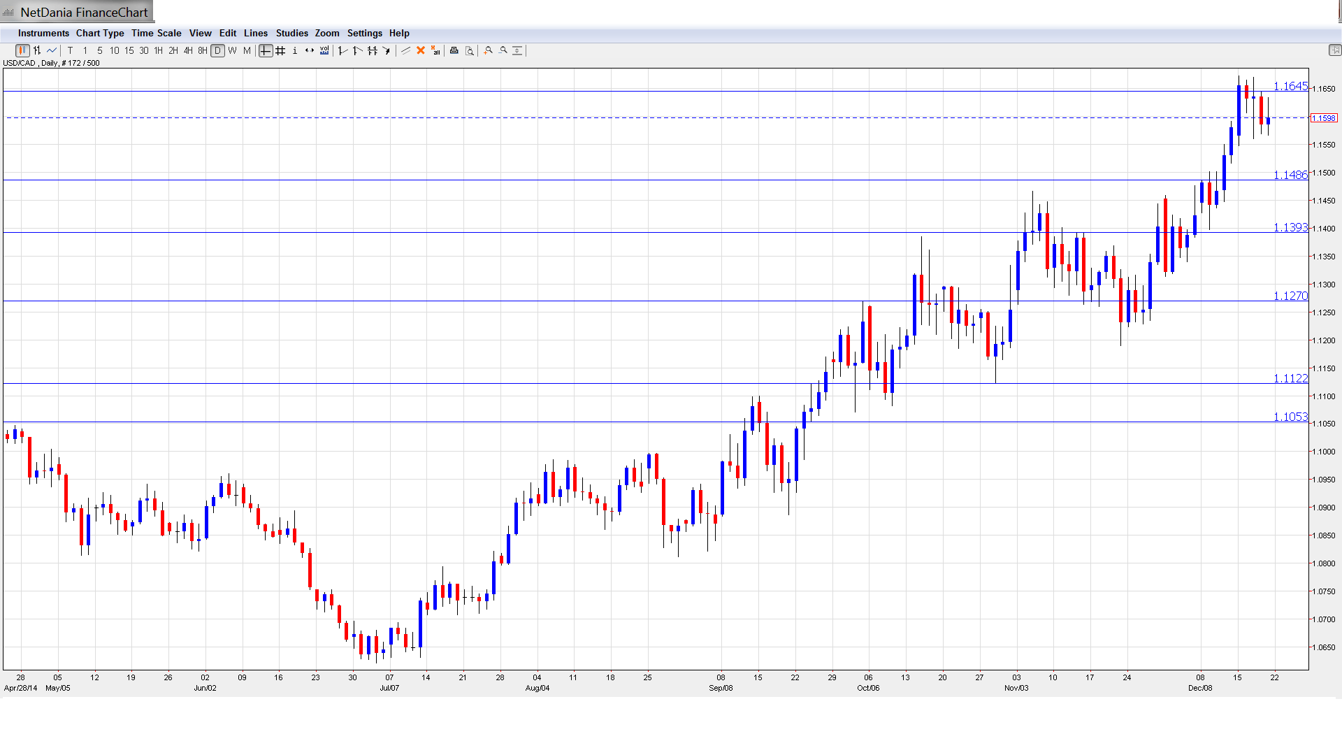 1.1752 marked the start of a rally by the Canadian dollar in February 2007, which saw USD/CAD drop below parity.