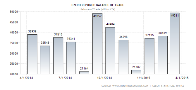 It’s interesting to note that the Koruna weakened to its low just two days before the surprise Swiss decoupling. The weakening appeared to result from the CNB emphatic deflation warning in early 2015. The Czech National Bank seemed willing to be patient, but the President of the Republic, Milos Zeman wasn’t. He publically stated his opinion that ‘the market was wrong’ and that he was willing to appoint central bankers who would remove the cap. The government pressure served only to create demand for the Koruna, driving it to all-time highs. By the end of March, Poland, Hungary and Romania were defending their own currencies, putting further pressure on the CNB. However, while the Czech National Bank and the Czech government were at loggerheads, economic growth began to accelerate. Q4 GDP measured 2.8% with inflation; up 0.2% in March. Growth was particularly strong in vehicles and machinery manufacturing. This would make sense since, as noted in the trade analysis above, the Czech manufacturing sector turns intermediate goods to finished product for re-export, particularly in the auto sector. Since a weaker Euro is designed to stimulate exports, the Czech economy is benefitting indirectly.