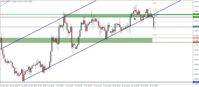 On the intraday charts, price action stalled near the support/resistance level of 1.13575 – 1.1335 and we notice the most recent price action breaking out of the rising price channel. We expect a possible retracement to the break out level at 1.1335 which could then set the stage for a decline to 1.117. Alternatively, a continued decline to 1.117 without any retracement is indicative that the support zone could hold the prices near 1.117 through 1.1135. A break below the support could however see EURUSD decline to test the next support at 1.08.