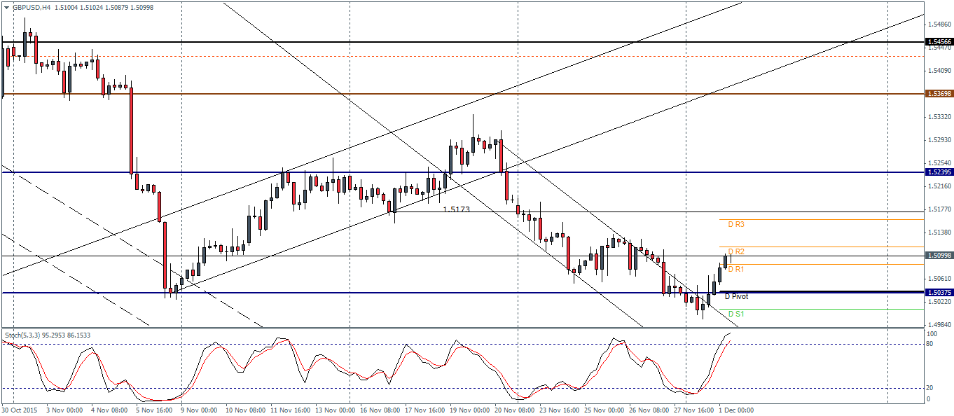 GBPUSD (1.50): GBPUSD closed on a bullish note yesterday and is back towards 1.509 region of support/resistance. O the 4-hour chart, prices broke out from the falling price channel and continued to move higher. A move to the downside could see GBPUSD test the support at 1.5037, which will pave way for a correction to the previously untested resistance at 1.5239. To the downside, failure to hold prices at 1.5037 will see GBPUSD push lower to 1.4961.