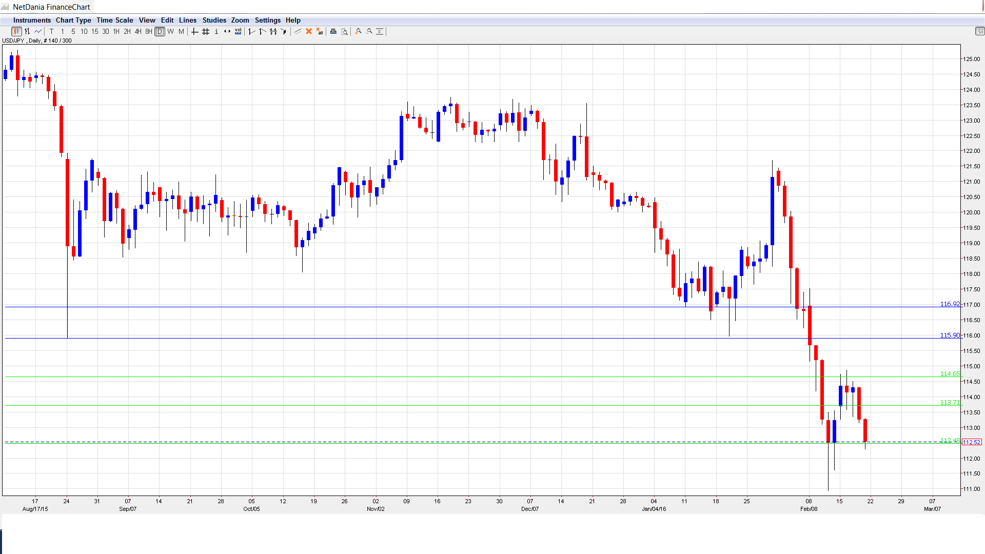 112.48 marked the start of a yen rally in January 2008, which saw USD/JPY drop below the 100 level.