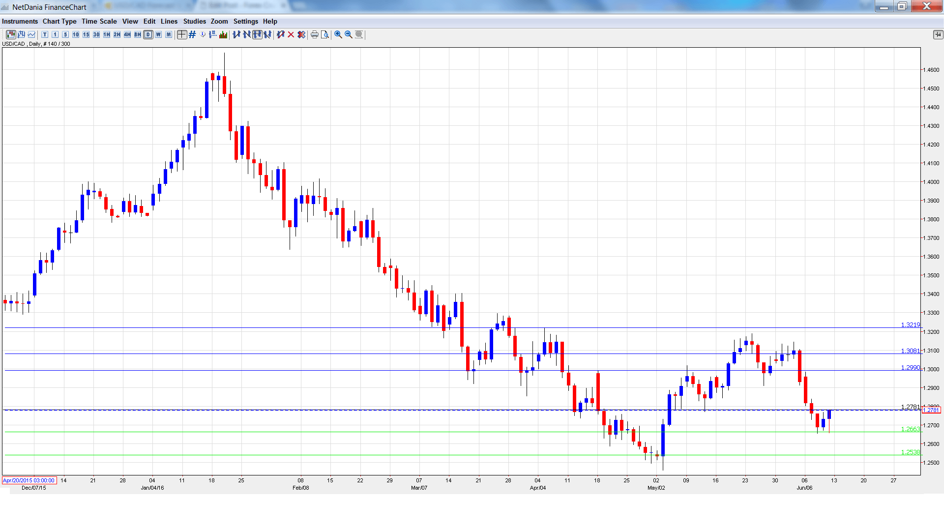 The Canadian dollar continued to rally last week, as USD/CAD dropped 180 points. The pair closed the week at 1.2779, its lowest level since late April. This week’s key events are Manufacturing Production and Core CPI. Here is an outlook on the major market-movers and an updated technical analysis for USD/CAD.